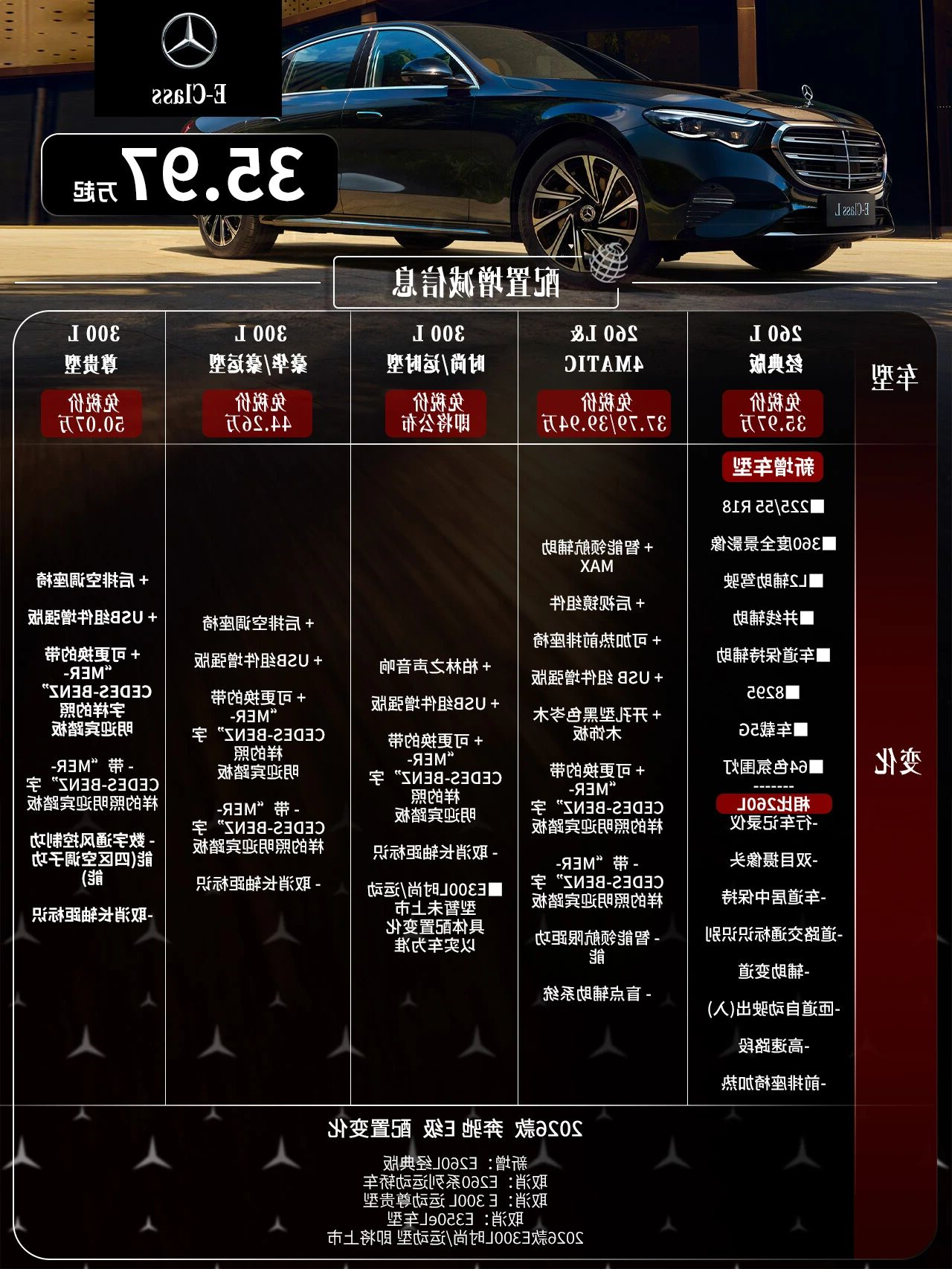 非凡官网入口: 2026款奔驰E级车提供E260L和E300L系列车型